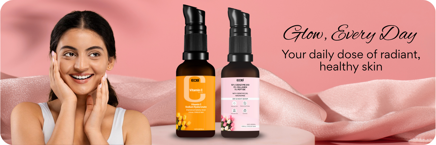 "EOB Skincare Combo β SPF 50 Sunscreen, Vitamin C Serum & Hydra Gel | Matte, Brightening & Hydrating"