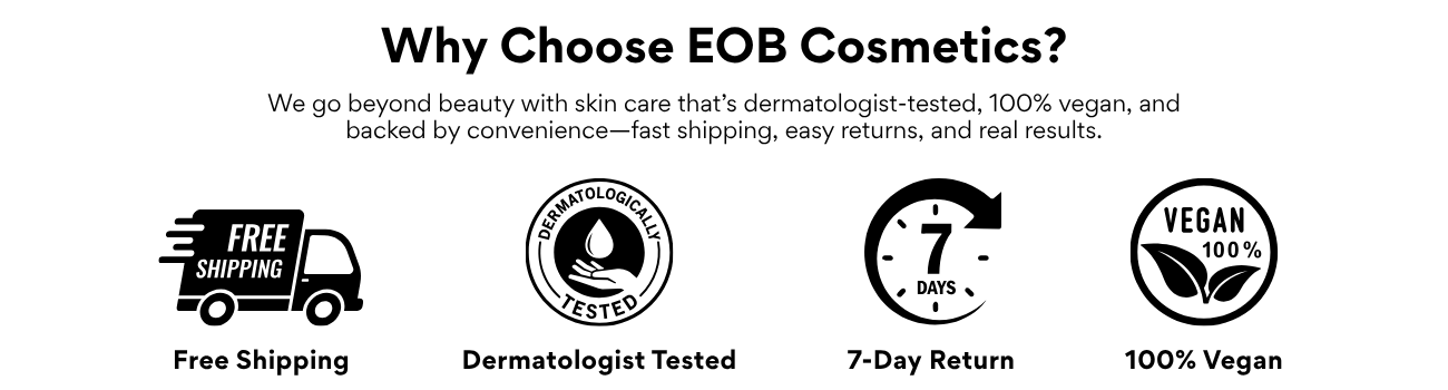 Our collections are designed to work synergistically, targeting the specific needs of women's skin across all ages and types. From our Vitamin C Serum to our everyday essentials, each EOB product is a carefully curated step in your journey to flawless skin. We focus on: