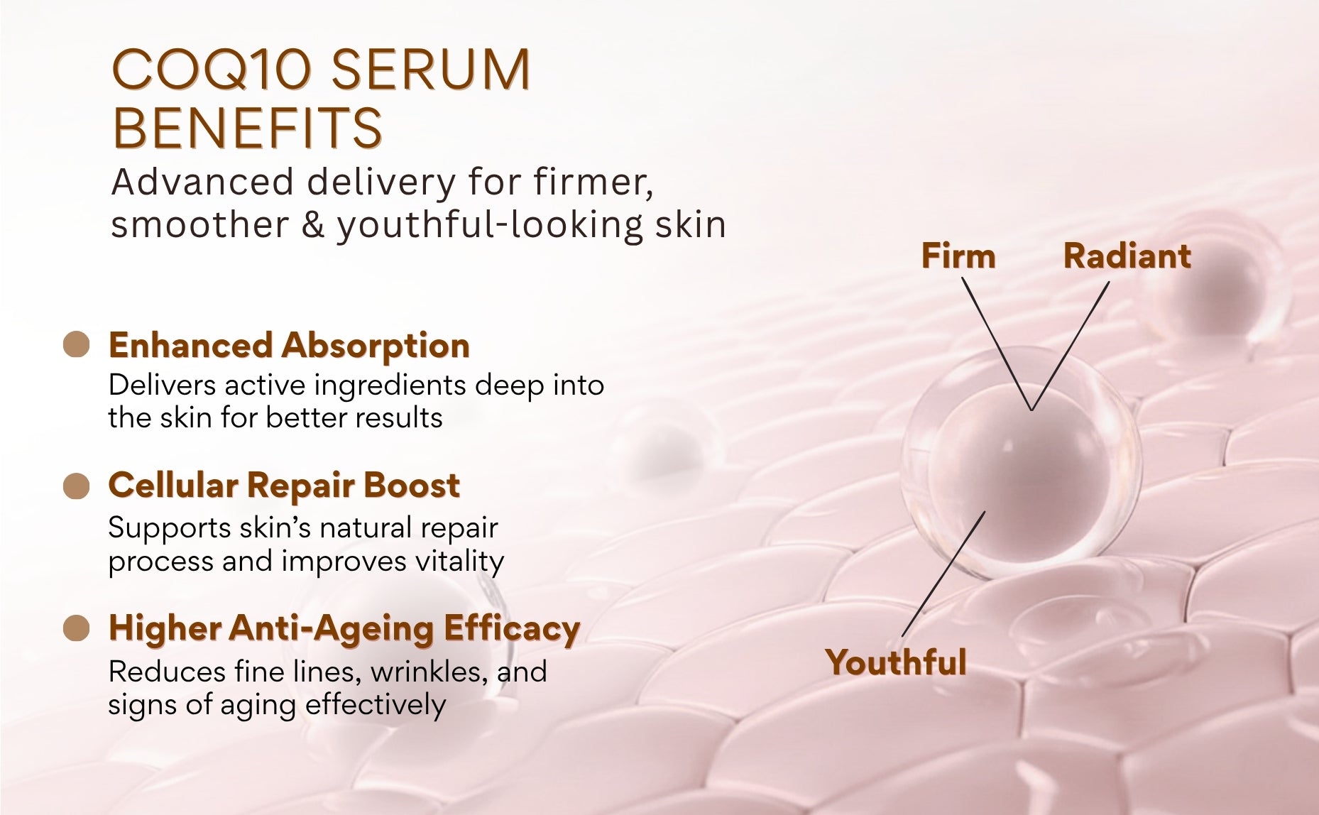 CoQ10 serum helps reduce fine lines, wrinkles, and dullness while improving skin hydration, elasticity, and overall radiance.